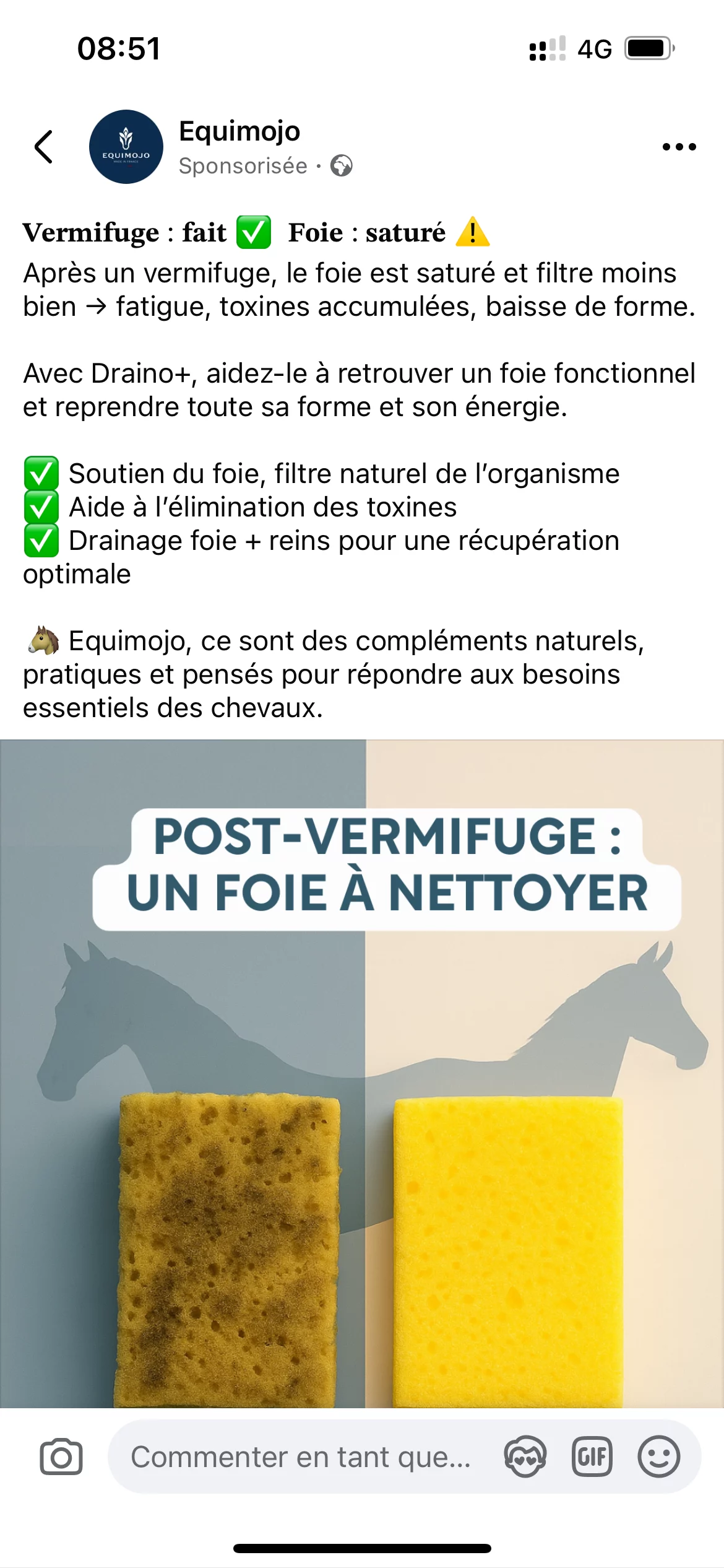 Sur le visuel utilisé et le ton du message, il s’agissait d’une image à visée pédagogique, destinée à sensibiliser visuellement les propriétaires au rôle du foie pendant la vermifugation. En aucune façon Equi-mojo  n’a voulu dire : « voici le foie de votre cheval tel qu’il sera après un vermifuge » (sous-entendu, nécrosé ou pathologique). L’image se voulait métaphorique, pour attirer l’attention sur ce « héros discret » qu’est le foie dans l’organisme.