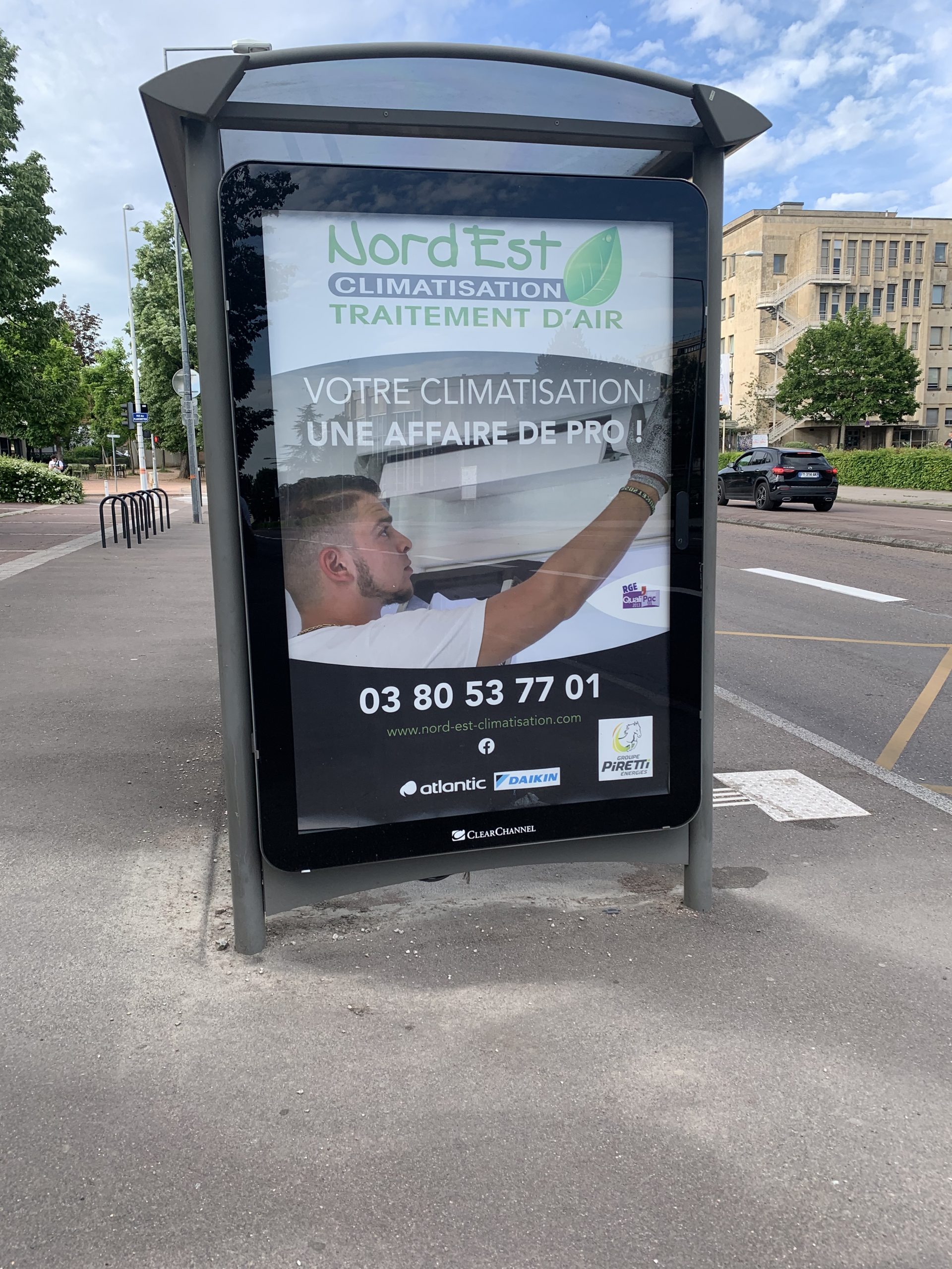 – La société d’affichage Clear Channel France fait valoir que cette publicité est issue d’une campagne de 107 faces qui s’est déroulée sur une durée de 7 jours à Dijon (mobilier urbain et abris-bus), pour le compte de la société A.T.C.F. La plainte visée en objet porte sur un panneau publicitaire intégré à un arrêt de bus Divia à Dijon.